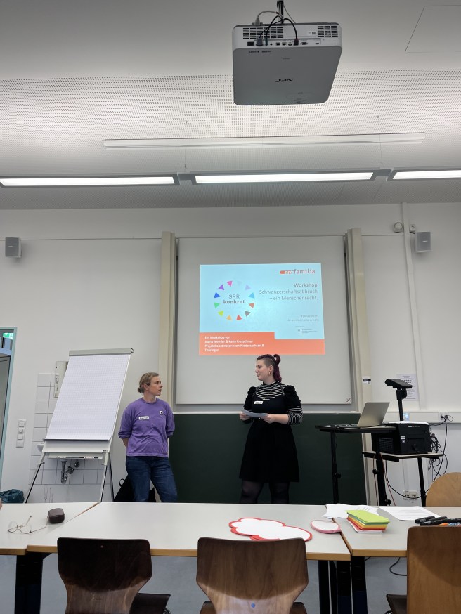 Samstag ging es dann los mit einem Vortrag über sexuelle und reproduktive Rechte von proFamilia. Das Projekt SRR konkret setzt sich für Wissensvermittlung und Weiterbildung zu allem rund um sexuelle und reproduktive Rechte ein. Genaueres findet ihr auf ihrer Website unter https://www.sexuelle-rechte.de/.