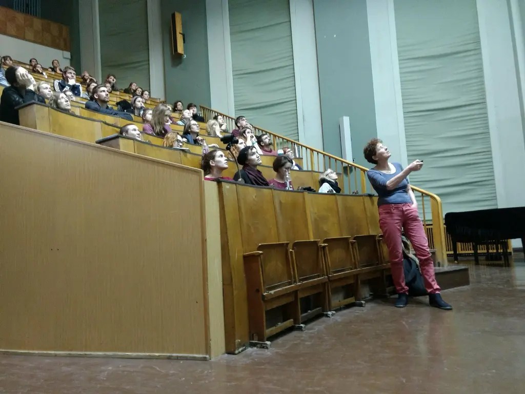 Sarah Diehl und einige unserer Kommiliton*innen bei der Vorstellung des Dokumentarfilms “Abortion Democracy: Poland/South Africa”; Foto: A. Baier